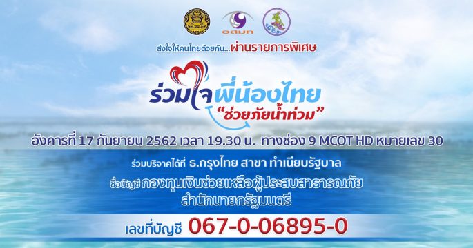 รัฐบาล เปิดรับบริจาคเงินช่วยเหลือผู้ประสบอุทกภัย จัดรายการพิเศษ “ร่วมใจ พี่น้องไทย ช่วยภัยน้ำท่วม”