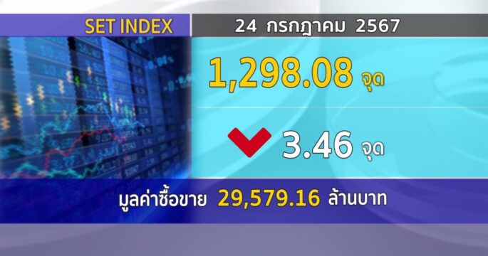 SET ปิดวันนี้ที่ 1,298.08 จุด ลดลง 3.46 จุด (-0.27%) มูลค่าซื้อขาย 29,631.37 ล้านบาท