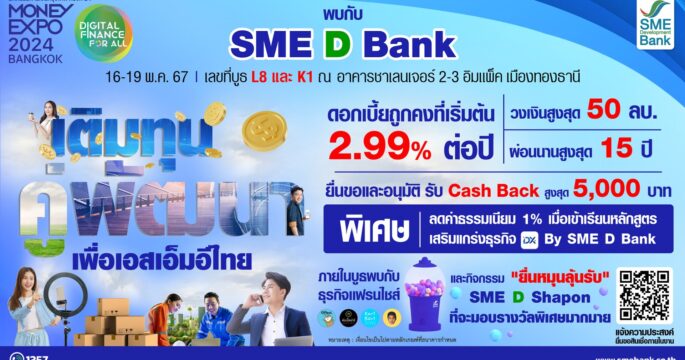 SME D Bank ปล่อย 4 สินเชื่อใหม่ วงเงิน 2 หมื่นล้าน อุ้มเอสเอ็มอีเข้าถึงเงินทุน สร้างฐานโอกาสธุรกิจ ครึ่งหลังปี 67