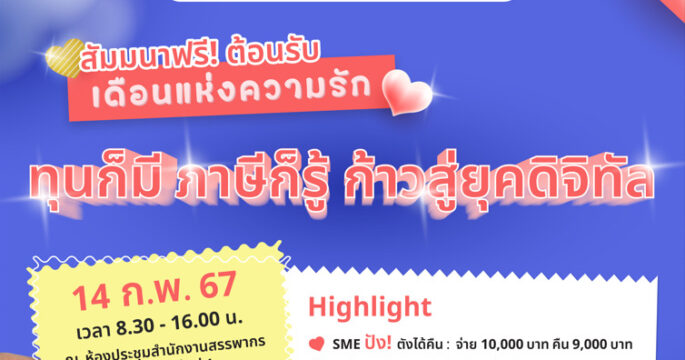 กรุงเทพฯ 25 ม.ค.-SME D Bank รู้ใจเอสเอ็มอีไทย ชวนสัมมนาฟรี “ทุนก็มี ภาษีก็รู้ ก้าวสู่ยุคดิจิทัล” เปลี่ยนเรื่องภาษีเป็นเรื่องง่าย กระจายจัดใน 3 จังหวัดภาคเหนือ 14-16 ก.พ. 67 ธนาคารพัฒนาวิสาหกิจขนาดกลางและขนาดย่อมแห่งประเทศไทย (ธพว.) หรือ SME D Bank เดินหน้าภารกิจธนาคารเพื่อพัฒนาเอสเอ็มอีไทย จับมือกรมสรรพากร สำนักงานส่งเสริมวิสาหกิจขนาดกลางและขนาดย่อม (สสว.) และบริษัท บนกองเงินกองทอง จำกัด ผู้ให้บริการจัดการระบบบริหารการเงิน บัญชี ภาษีครบวงจร จัดกิจกรรมสัมมนาฟรี “ทุนก็มี ภาษีก็รู้ ก้าวสู่ยุคดิจิทัล” หวังช่วยผู้ประกอบการเอสเอ็มอีเปลี่ยนเรื่องบัญชีและภาษีให้เป็นเรื่องง่าย ด้วยการใช้เครื่องมือดิจิทัลอำนวยความสะดวกสบาย และเข้าถึงสิทธิประโยชน์ต่าง ๆ ที่จะช่วยลดต้นทุนธุรกิจ และที่สำคัญสามารถเข้าถึงแหล่งทุนจาก SME D Bank ดอกเบี้ยถูกเริ่มต้นเพียง 2.99%ต่อปี วงเงินกู้สูงสุด 50 ล้านบาท ผ่อนนานสูงสุดถึง 15 ปี โดยกำหนดจัด […]