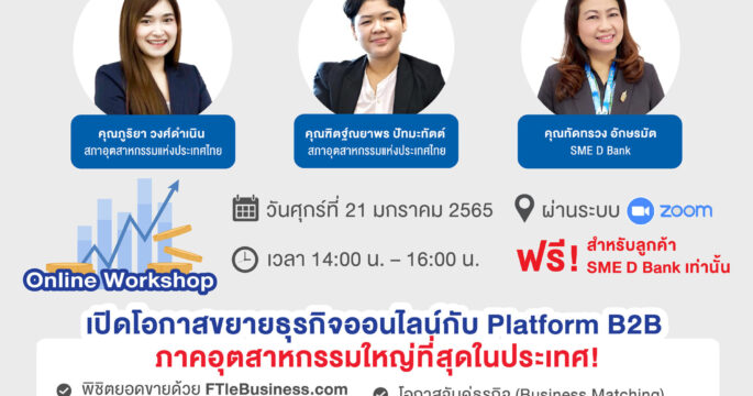 SME D Bank จับมือ ส.อ.ท. จัดกิจกรรมหนุนเอสเอ็มอีไทยเพิ่มรายได้ ‘เปิดตลาดออนไลน์ฟรี FTIeBusiness’ พาจับคู่ธุรกิจสู่ความสำเร็จ