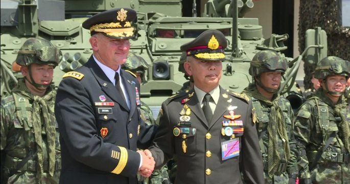 Representatives of Thai and American armies attended a ceremony to accept 10 Stryker armoured personnel carriers that formed the first lot of 70 carriers