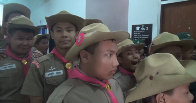 A group of primary school students in Thailand’s northern Chiang Mai province tour a police station and jail cells in a programme to dissuade them from law violation
