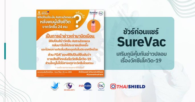 ชัวร์ก่อนแชร์: ฟิลิปปินส์ระงับ AstraZeneca หลังพบผู้เสียชีวิต 24 คน จริงหรือ?