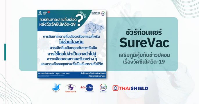 การกินยาละลายลิ่มเลือดหรือยาแอสไพรินไม่ช่วยป้องกันการเกิดลิ่มเลือดอุดตันจากวัคซีน