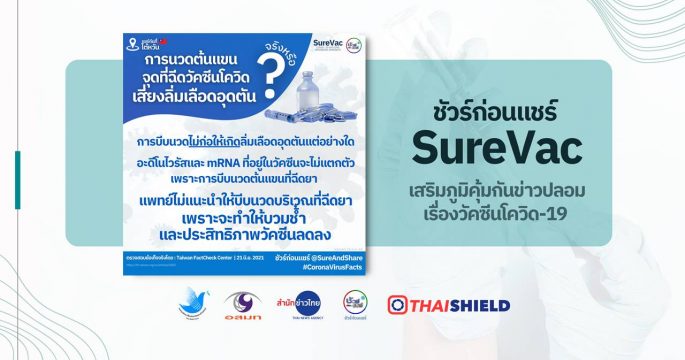 อะดีโนไวรัสและ mRNA ที่อยู่ในวัคซีนจะไม่แตกตัวเพราะการบีบนวดต้นแขนที่ฉีดยา และไม่ก่อให้เกิดลิ่มเลือดอุดตันแต่อย่างใด