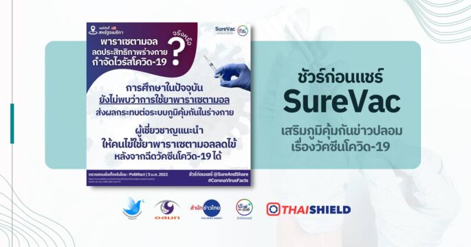 ผู้เชี่ยวชาญแนะนำให้คนไข้ใช้ยาพาราเซตามอลลดไข้หลังจากฉีดวัคซีนโควิด 19 ได้