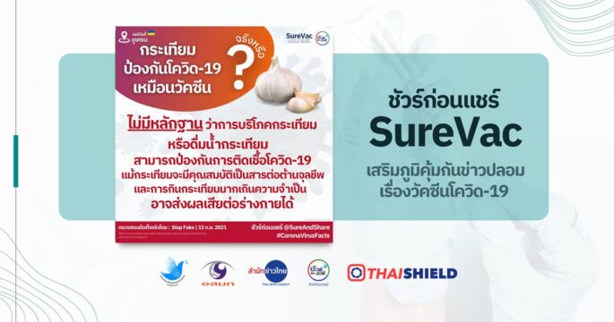 ไม่มีหลักฐานว่าการบริโภคกระเทียมหรือดื่มน้ำกระเทียมสามารถป้องกันการติดเชื้อโควิด-19
