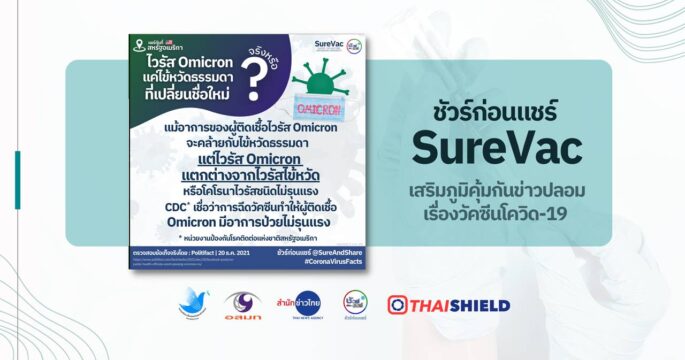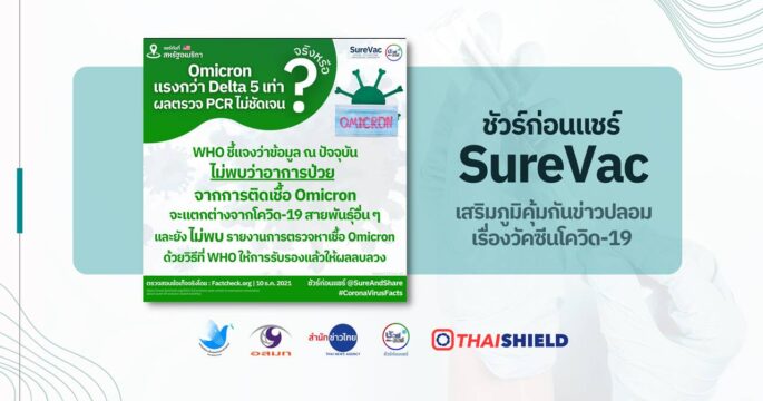 WHO ชี้แจงว่าข้อมูล ณ ปัจจุบันไม่พบว่า อาการป่วยจากการติดเชื้อ Omicron จะแตกต่างจากโควิด 19 สายพันธุ์อื่นๆ