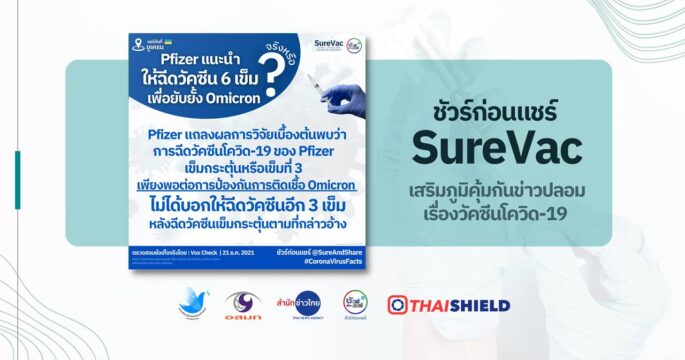 Pfizer ไม่ได้บอกให้ฉีดวัคซีนอีก 3 เข็มหลังฉีดวัคซีนเข็มกระตุ้นตามที่กล่าวอ้าง