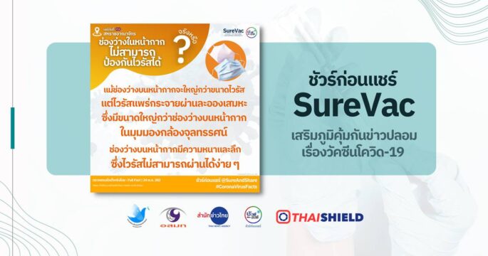 ชัวร์ก่อนแชร์: ช่องว่างในหน้ากากไม่สามารถป้องกันไวรัสได้ จริงหรือ?