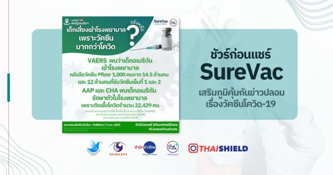 VAERS พบว่าเด็กอเมริกันเข้าโรงพยาบาลหลังฉีดวัคซีน Pfizer 1,000 คนจาก 14.5 ล้านคนที่รับวัคซีนเข็มที่ 1 และ 12 ล้านคนที่รับวัคซีนเข็มที่ 2