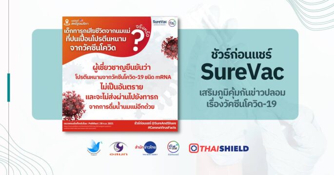 ผู้เชี่ยวชาญยืนยันว่าโปรตีนหนามจากวัคซีนโควิด 19 ชนิด mRNA ไม่เป็นอันตราย และจะไม่ส่งผ่านไปยังทารกจากการดื่มน้ำนมแม่อีกด้วย