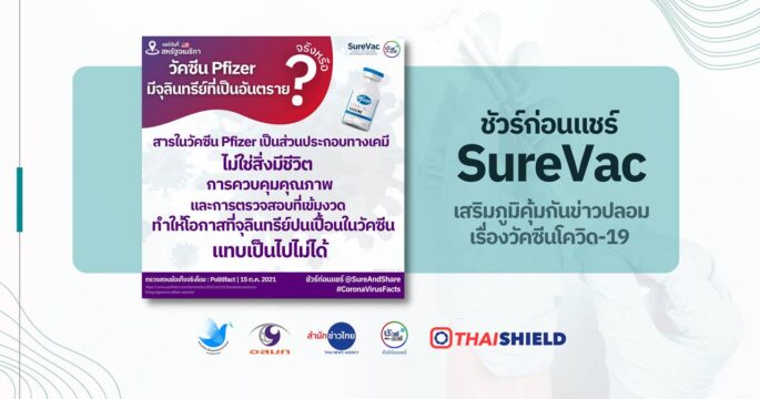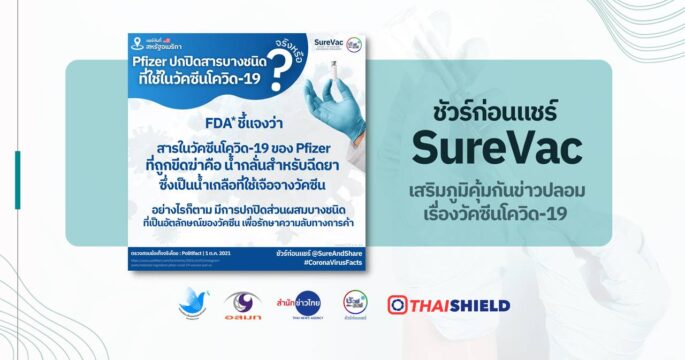 FDA ชี้แจงว่าสารในวัคซีนโควิด 19 ของ Pfizer ที่ถูกขีดฆ่าคือน้ำกลั่นสำหรับฉีดยา ซึ่งเป็นน้ำเกลือที่ใช้เจือจางวัคซีน Pfizer