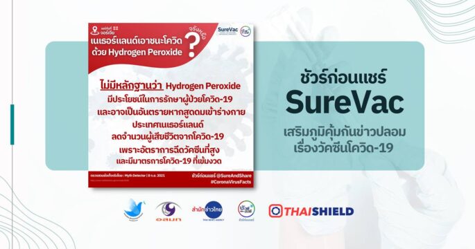 ไม่มีหลักฐานว่า Hydrogen Peroxide มีประโยชน์ในการรักษาผู้ป่วยโควิด 19 และอาจเป็นอันตรายหากสูดดมเข้าร่างกาย