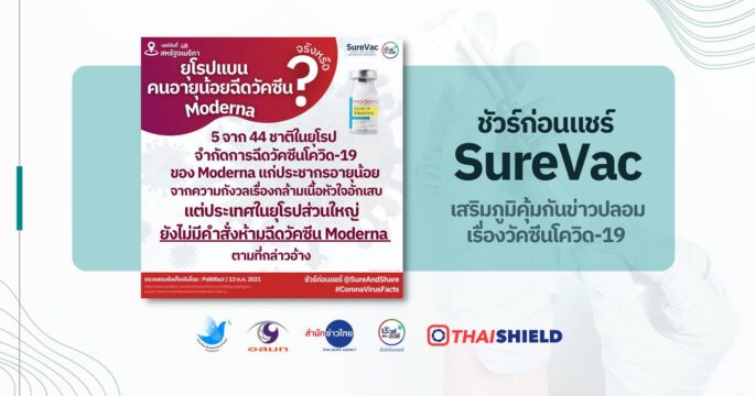 5 จาก 44 ชาติในยุโรปกำจัดการฉีดวัคซีนโควิด 19 ของ Moderna แก่ประชากรอายุน้อย จากความกังวลเรื่องกล้ามเนื้อหัวใจอักเสบ แต่ประเทศในยุโรปส่วนใหญ่ยังไม่มีคำสั่งห้ามฉีดวัคซีน Moderna ตามที่กล่าวอ้าง