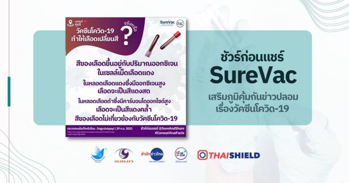 สีของเลือดขึ้นอยู่กับปริมาณออกซิเจนในเซลล์เม็ดเลือดแดง ไม่เกี่ยวข้องกับวัคซีนโควิด 19