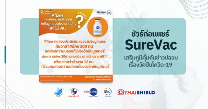 Pfizer ทดสอบความปลอดภัยของวัคซีนบูสเตอร์กับอาสาสมัคร 306 คน และมีอาสาสมัครอายุ 65 ปีหรือมากกว่าจำนวน 12 คนที่ร่วมทดสอบความปลอดภัยของวัคซีนบูสเตอร์