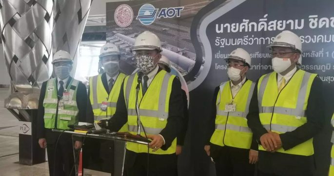 Transport Minister Saksayam Chidchob inspected the progress in the construction of the new terminal extension at Suvarnabhumi Airport, which is now 90 per cent completed and will be ready for operation in 2022.