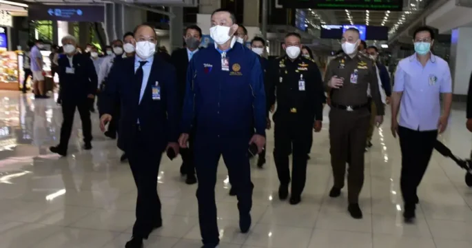 Transport Minister Saksayam Chidchob inspected Suvarnabhumi airport to check its readiness before the government eases arrival rules on May 1.