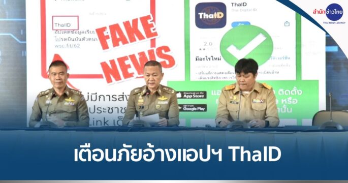 สำนักงานตำรวจแห่งชาติ เตือนภัยออนไลน์ ระวังคนร้ายอ้างแอปฯ ThaID หลอกโหลดแอปฯ ดูดเงิน ด้านกรมการปกครอง ยืนยันไม่มีช่องทางไลน์ทางการในการติดต่อกับประชาชน และไม่มีนโยบายส่ง SMS ไปยังประชาชนแต่อย่างใด