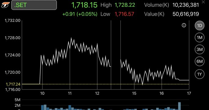 หุ้นไทยบวกเล็กน้อย คาดหวังงาน “Thailand Focus 2018” วันพรุ่งนี้ช่วยหนุน