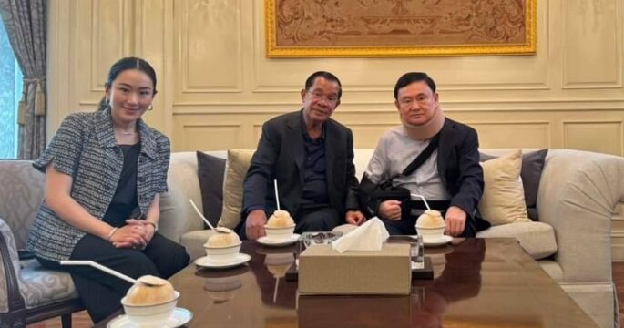 Former Cambodian Prime Minister Hun Sen has traveled to visit former Thai Prime Minister Thaksin Shinawatra at the latter’s residence, where they have lunch together as long-time close friends.
