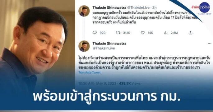 BANGKOK, May 9 (TNA) – Fugitive Former Prime Minister Thaksin Shinawatra said in a tweet that he decided to return to Thailand by July and would follow the legal process. He wrote the message on Twitter days ahead of the May 14 election. He said he would return home to raise his grandchildren before his […]