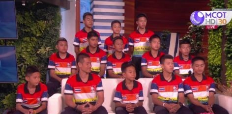 Five members of the Mu Pa or wild boars football team who survived the cave ordeal last year begin training with a local school football team.