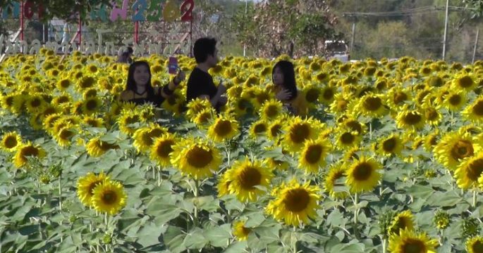 Tourists and local people are enjoying taking photographs and feeling cold weather in a blossoming 30-rai sunflower field at the Bueng Kui park in Hua Khwang sub-district of Kosum Phisai district of Maha Sarakham province, northeastern Thailand.