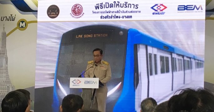 Prime Minister Prayut Chan-o-cha opened an extended route of the Blue Line electric railway from Hua Lamphong to Bang Kae.