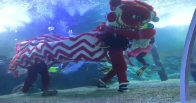 Chiang Mai Zoo Holds Underwater Lion Dance to Celebrate Chinese New Year