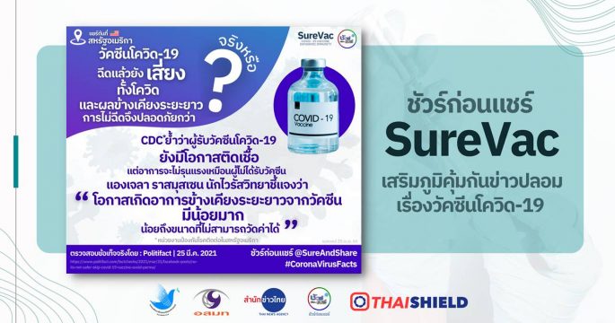 1 มิถุนายน 2564ตรวจสอบข้อเท็จจริงโดย: Politifact (สหรัฐอเมริกา)แปลและเรียบเรียงบทความโดย: พีรพล อนุตรโสตถิ์, อดิศร สุขสมอรรถ ประเภทข่าวปลอม: ข้อมูลเท็จ บทสรุป: CDC ย้ำว่าผู้รับวัคซีนโควิด 19 ยังมีโอกาสติดเชื้อแต่อาการจะไม่หนักเหมือนผู้ไม่ได้รับวัคซีน แองเจลา ราสมุสเซน นักไวรัสวิทยาชี้แจงว่าโอกาสเกิดอาการข้างเคียงระยะยาวจากวัคซีนน้อยมาก น้อยถึงขนาดที่ไม่สามารถวัดค่าได้ ข้อมูลที่ถูกแชร์: เป็นข้อความที่ถูกแชร์ทาง Instagram ก่อนจะถูกตั้งสถานะให้เป็นข่าวปลอม โดยเนื้อหาเป็นการชี้นำว่า “ถ้าฉันไม่ฉีดวัคซีน ฉันจะเสี่ยงติดโควิด ถ้าฉันฉีดวัคซีน ฉันก็ยังคงเสี่ยงติดโควิดแถมเสี่ยงกับอาการข้างเคียงระยะยาวจากวัคซีน ดังนั้นฉันจึงลดความเสี่ยงด้วยการไม่ฉีดวัคซีน” FACT CHECK: ตรวจสอบข้อเท็จจริง: แม้ปัจจุบันจะยังไม่มีวัคซีนชนิดไหนที่ป้องกันโควิด 19 ได้ 100% แต่วัคซีนทั้ง 3 ชนิดที่ได้รับการอนุมัติให้ใช้ในสหรัฐอเมริกาอย่าง Pfizer-BioNTech, Moderna และ Johnson & Johnson ต่างมีประสิทธิผลป้องกันโรคที่น่าพอใจในระดับ 95%, 94% และ 66% ตามลำดับ หน่วยงานป้องกันโรคติดต่อในสหรัฐอเมริกา (CDC) ได้เผยแพร่ผลวิจัยเมื่อวันที่ […]
