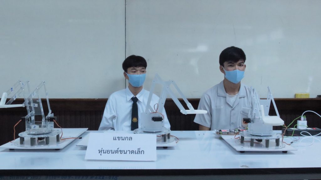 ผลงานหุ่นยนต์เพื่อการศึกษา หรทอหุ่นยนต์มด ที่นักศึกษาใช้การบูรณาการเทคโนโลยี พัฒนาเป็นหุ่นยนต์มด ที่สามารถบังคับสั่งการด้วยโปรแกรมที่ออกแบบมาเฉพาะ ทำให้หุ่นยนต์ทำตามสั่งได้หลากหลาย มีระบบเซ็นเซอร์ตรวจจับวัตถุ หากมีวัตถุตรงหน้าสามารถบังคับหลบหลีกหรือหยุดได้ โดยจะเป็นต้นแบบสร้างแรงบันดาลใจให้เด็กนักเรียนมีความสนใจด้านเทคโนโลยี วิทยาการหุ่นยนต์ที่จะต่อยอดเป็นหุ่นยนต์ที่ใช้งานในภาคอุตสาหกรรม เสริมเศรษฐกิจให้เข้มแข็งลดการนำเข้าเทคโนโลยีจากต่างประเทศลงได้ นอกจากนี้ยังมีนวัตกรรมกล่องฆ่าเชื้อด้วยแสงUV, เครื่องวัดอุณหภูมิแบบไม่สัมผัส และแขนกลหุ่นยนต์ขนาดเล็ก ซึ่งจะเป็นต้นแบบการพัฒนาด้านนวัตกรรมจากเยาวชนไทยที่ทำประโยชน์ได้อย่างมีประสิทธิภาพ