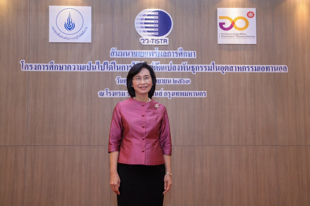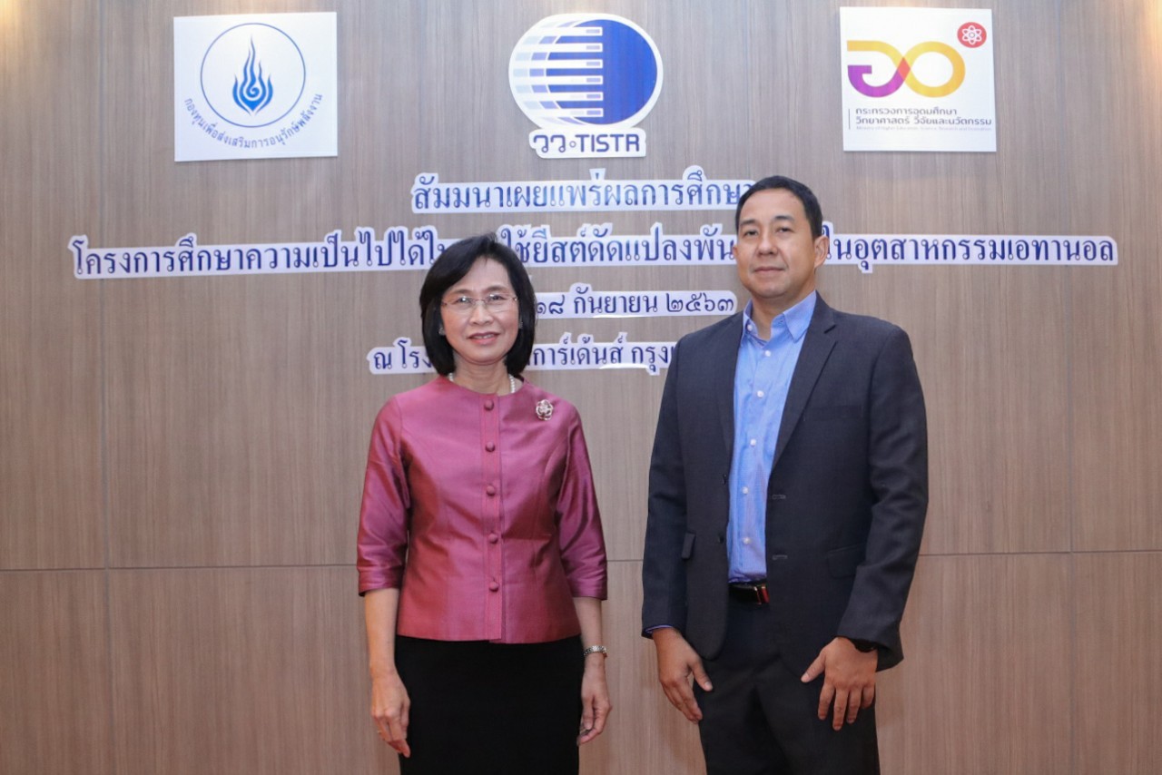 ดร.ชุติมา เอี่ยมโชติชวลิต ผู้ว่าการ วว. กล่าวว่า โครงการศึกษาความเป็นไปได้ในการใช้ยีสต์ดัดแปลงพันธุกรรมในอุตสาหกรรมเอทานอล โดยศูนย์ความหลากหลายทางชีวภาพ วว. วิจัยพบว่า เมื่อเปรียบเทียบกับเชื้อยีสต์ที่มีการตัดแต่งพันธุกรรมด้วยเชื้อยีสต์จากธรรมชาติของประเทศไทย ทั้งในด้านประสิทธิภาพการผลิตเอทานอล และด้านคุณสมบัติอื่น ๆ ที่มีผลต่อต้นทุนการผลิตเอทานอลอื่น ๆ เช่น สารพลอยได้ และ ของเหลือจากกระบวนการผลิตเอทานอลโดยยีสต์ดัดแปลงพันธุกรรม รวมถึงความปลอดภัยทางชีวภาพ โดย วว. สามารถคัดเลือกยีสต์ดัดแปลงพันธุกรรม คือ สายพันธุ์ MD1 สำหรับวัตถุดิบมันสำปะหลัง มีความสามารถในการผลิตเอนไซม์กลูโคอะไมเลสได้ ช่วยในการผลิตเอทานอลที่ความเข้มข้นสูง สามารถลดต้นทุนการผลิตเอทานอลในส่วนของการใช้เอนไซม์ลงได้ ส่วนเชื้อยีสต์ดัดแปลงพันธุกรรม GY1 สำหรับวัตถุดิบประเภทกากน้ำตาล มีศักยภาพในการผลิตเอทานอลได้ดีกว่าเชื้อยีสต์อุตสาหกรรม เมื่อทำการผลิตเอทานอลที่ใช้ความเข้มข้นตั้งต้นของกากน้ำตาลสูง ส่วนการทดสอบประเมินผลกระทบด้านความปลอดภัยทางชีวภาพของการใช้เชื้อยีสต์ดัดแปลงพันธุกรรม ผ่านการทดสอบประเมินผลกระทบด้านความปลอดภัยทางชีวภาพ ไม่ก่อให้เกิดการกลายพันธุ์