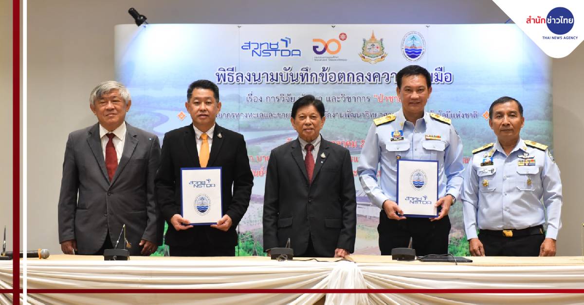 สำนักงานพัฒนาวิทยาศาสตร์และเทคโนโลยีแห่งชาติ (สวทช.) ร่วมกับ กรมทรัพยากรทางทะเลและชายฝั่ง (ทช.) ลงนามบันทึกข้อตกลงความร่วมมือ การวิจัย พัฒนา และวิชาการ เกี่ยวกับป่าชายเลน ณ กรมทรัพยากรทางทะเลและชายฝั่ง ศูนย์ราชการแจ้งวัฒนะ โดยมีผู้อำนวยการ สวทช. และดี อธิบดีกรมทรัพยากรทางทะเลและชายฝั่ง ร่วมลงนามความร่วมมือ