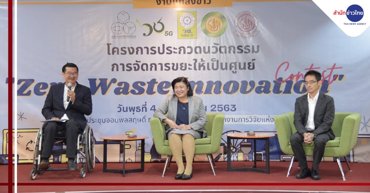 สำนักงานการวิจัยแห่งชาติ (วช.) ร่วมกับ มูลนิธิอารยสถาปัตย์เพื่อคนทั้งมวล และ Thailand Friendly Design Expo 2021 : มหกรรมอารยสถาปัตย์ และนวัตกรรมสุขภาพเพื่อคนทั้งมวล ครั้งที่ 5 จัด “โครงการประกวดนวัตกรรมการจัดการขยะให้เป็นศูนย์ (Zero Waste Innovation Contest)” โดยมี ดร.วิภารัตน์ ดีอ่อง รองผู้อำนวยการสำนักงานการวิจัยแห่งชาติ รักษาราชการแทน ผู้อำนวยการสำนักงานการวิจัยแห่งชาติ พร้อมด้วยรองศาสตราจารย์ ดร.สัญญา สิริวิทยาปกรณ์ ผู้อำนวยการแผนงานท้าทายไทย : ทะเลไทยไร้ขยะมหาวิทยาลัยเกษตรศาสตร์