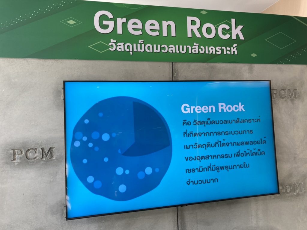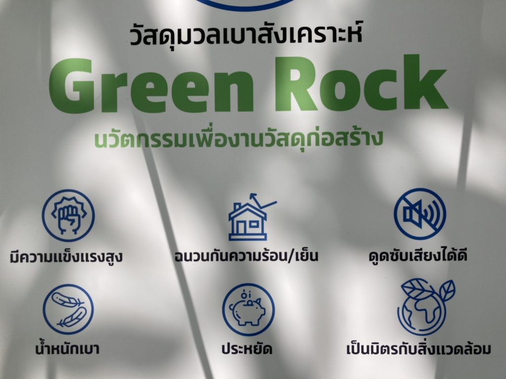 สำนักงานพัฒนาวิทยาศาสตร์และเทคโนโลยีแห่งชาติ หรือ สวทช. โดยศูนย์เทคโนโลยีโลหะและวัสดุแห่งชาติ (เอ็มเทค) ร่วมกับบริษัท ไทยเบฟเวอเรจ จำกัด (มหาชน) เปิดตัวผลิตภัณฑ์ G Rock สู่ Green Rock นวัตกรรมวัสดุเม็ดมวลเบาสังเคราะห์สำหรับอุตสาหกรรมวัสดุก่อสร้าง ที่มีความแข็งแรงกว่าวัสดุเดิมในปัจุบัน เป็นมิตรต่อสิ่งแวดล้อม รองรับการพัฒนาด้านอุตสาหกรรมก่อสร้างให้มีความยั่งยืน