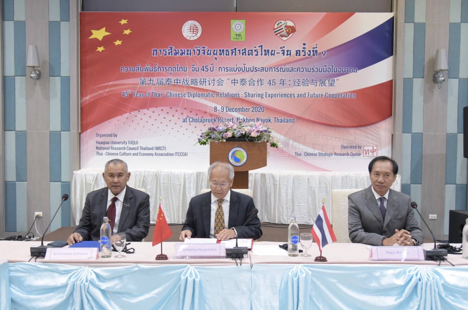 สำนักงานการวิจัยแห่งชาติ (วช.) จัดการสัมมนาวิจัยยุทธศาสตร์ไทย-จีน ครั้งที่ 9 ภายใต้หัวข้อ ความสัมพันธ์การทูตไทย – จีน 45 ปี : การแบ่งปันประสบการณ์และความร่วมมือในอนาคต ร่วมกับมหาวิทยาลัยหัวเฉียวแห่งสาธารณรัฐประชาชนจีน (Huaqiao University : HQU) ระหว่างวันที่ 8 – 9 ธันวาคม 2563 ณ ชลพฤกษ์รีสอร์ท อำเภอบ้านนา จังหวัดนครนายก โดย นายสมปรารถนา สุขทวี รองผู้อำนวยการสำนักงานการวิจัยแห่งชาติ และรองศาสตราจารย์ ดร.โภคิณ พลกุล นายกสมาคมวัฒนธรรมและเศรษฐกิจไทย – จีน ให้การต้อนรับ
