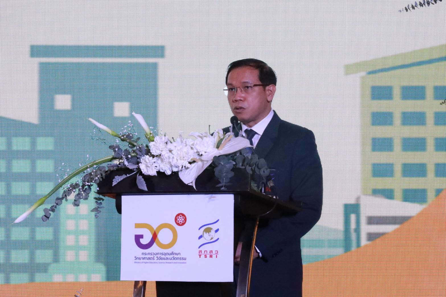 รศ.ดร.อภิศักดิ์ ธีระวิสิษฐ์ รักษาการรองผู้อำนวยการด้านการดำเนินการกองทุนและอำนวยการ สกสว. กล่าวว่ากระทรวง อว. มีบทบาทสำคัญในการวางรากฐานประเทศ ขับเคลื่อนประเทศไทยสู่ประเทศที่พัฒนาแล้ว โดยกลไกการพัฒนาระบบวิทยาศาสตร์ วิจัยและนวัตกรรม ซึ่งที่ผ่านมาเมื่อประเทศต้องประสบกับการแพร่ระบาดของโควิด19 ส่งผลกระทบในวงกว้างกับทุกภาคส่วน การสื่อสารเพื่อสร้างการรับรู้ ความเข้าใจที่ถูกต้องให้กับสาธารณชนจึงเป็นเรื่องสำคัญ