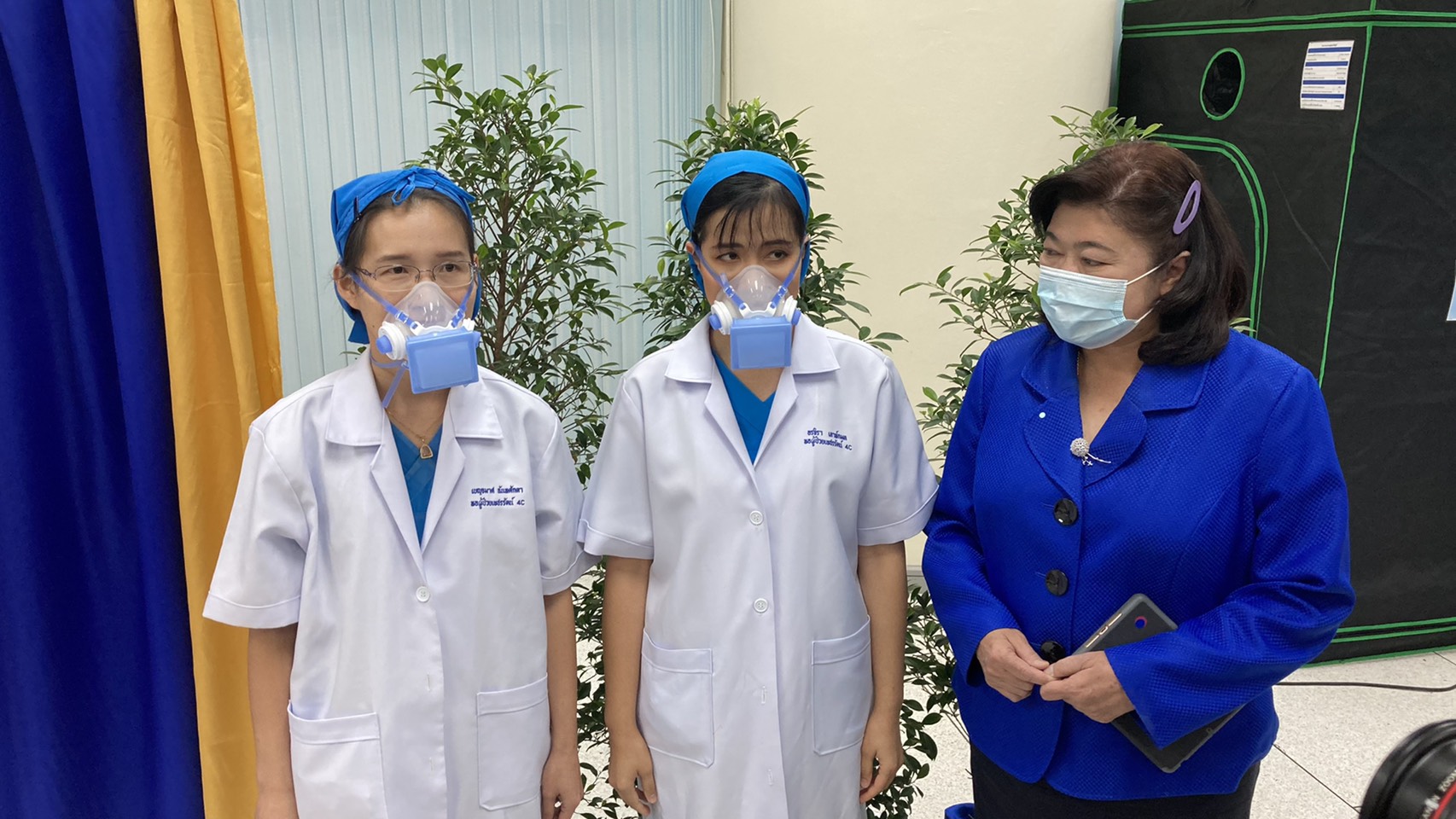 โดยนอกจากหน้ากาก N99 แล้ว มหาวิทยาลัยนวมินทราธิราช ยังได้ต่อยอดนวัตกรรมหน้ากากป้องกันเชื้อโรคแบบคลุมศีรษะชนิดมีพัดลมพร้อมชุดกรองอากาศชุด PAPR จำนวน 1,000 ชุด โดยมีระบบกรองอากาศประสิทธิภาพสูง ป้องกันการปนเปื้อนของเชื้อโรคระหว่างปฏบัติหน้าที่ได้ ซึ่งกระทรวง อว. และวช. จะรับมอบ และเป็นตัวแทนส่งมอบอุปกรณ์ทั้งหมดให้กับ องค์การเภสัชกรรมและกรุงเทพมหานคร เพื่อส่งต่อให้บุคลากรทางการแพทย์ใช้รับมือกับการแพร่ระบาดของโรคโควิด-19 ระลอกใหม่ที่เกิดขึ้นอยู่ในขณะนี้ต่อไป รวมทั้งหากมีความต้องการใช้งานเพิ่มเติมก็พร้อมจะให้การสนับสนุนผลิตอุปกรณ์เพิ่มเติมให้เพียงพอ ซึ่งเป็นผลิตภัณฑ์ฝีมือนักวิจัยไทย ที่ผลิตได้ในประเทศ จึงลดข้อจำกัดในการสั่งซื้อ หรือขาดแคลนได้อย่างยั่งยืน