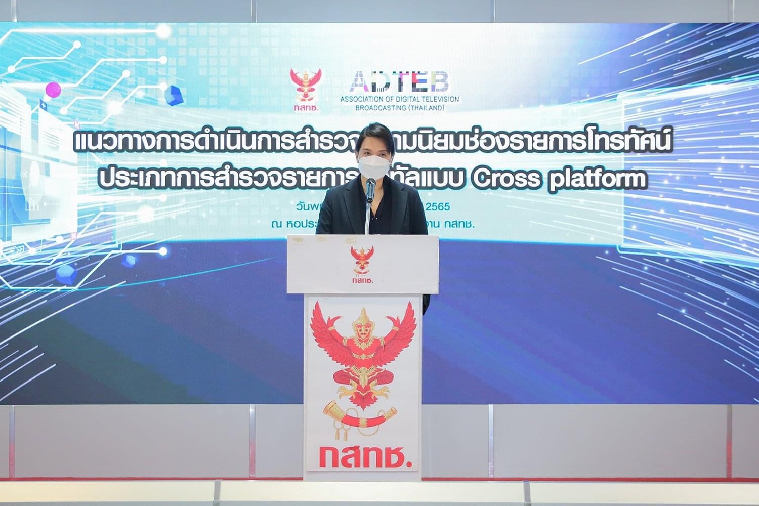 ศาสตราจารย์ ดร. พิรงรอง รามสูต กสทช. เปิดเผยว่า วันนี้ (11 สิงหาคม 2565) สำนักงาน กสทช. ร่วมกับ สมาคมโทรทัศน์ระบบดิจิตอล (ประเทศไทย) เปิดตัวระบบวัดเรตติ้งข้ามแพลตฟอร์ม (Cross-Platform Ratings) ที่แรกในอาเซียน และจะเปิดให้ใช้ระบบการวัดเรตติ้งข้ามแพลตฟอร์มแบบเต็มรูปแบบในไตรมาสที่ 1 ปี พ.ศ. 2566 เพื่อให้มีมาตรวัดผู้ชมทั้งที่รับชมรายการผ่านหน้าจอโทรทัศน์และผ่านแพลตฟอร์มดิจิทัล เพื่อให้สอดคล้องกับความเปลี่ยนแปลงของเทคโนโลยีและพฤติกรรมผู้บริโภคในยุคปัจจุบัน