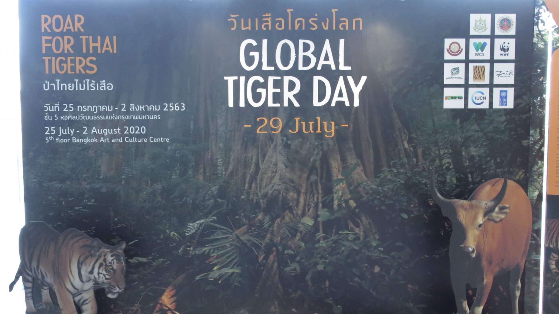 กรมอุทยานแห่งชาติ สัตว์ป่า และพันธุ์พืช ร่วมกับคณะวนศาสตร์ มหาวิทยาลัยเกษตรศาสตร์ และหน่วยงานที่เกี่ยวข้อง จัดงานวันเสือโคร่งโลก ประจำปี 2563 ในหัวข้อ ป่าไทยไม่ไร้เสือ Roar for Thai Tigers ณ หอศิลปวัฒนธรรมแห่งกรุงเทพมหานคร เพื่อรณรงค์การอนุรักษ์เสือโคร่งทั่วโลก ให้สามารถดำรงชีวิตในผืนป่าธรรมชาติ และเพิ่มจำนวนมากขึ้นในอนาคต โดยมีนายพงศ์บุญย์ ปองทอง รองปลัดกระทรวงทรัยากรธรรมชาติและสิ่งแวดล้อม เป็นประธานเปิดกิจกรรม