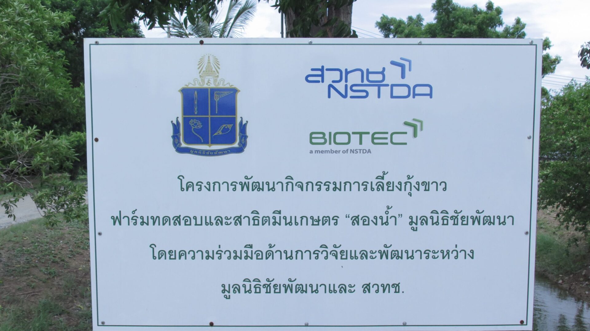 สำนักงานพัฒนาวิทยาศาสตร์และเทคโนโลยีแห่งชาติ (สวทช.) ศูนย์พันธุ์วิศวกรรมและเทคโนโลยีชีวภาพแห่งชาติ (ไบโอเทค) และ ศูนย์เทคโนโลยีอิเล็กทรอนิกส์และคอมพิวเตอร์แห่งชาติ (เนคเทค) ร่วมกับ มูลนิธิชัยพัฒนา นำองค์ความรู้และเทคโนโลยีต่าง ๆ จากการวิจัยและพัฒนามาทดลองใช้งานในโครงการฟาร์มทดสอบและสาธิตมีนเกษตร “สองน้ำ” มูลนิธิชัยพัฒนา จ. ฉะเชิงเทรา เป็นต้นแบบระบบการเพาะเลี้ยงสัตว์น้ำ เพื่อขยายผลให้เกษตรกร นำไปประยุกต์ใช้สนับสนุนอุตสาหกรรมการเลี้ยงสัตว์น้ำของประเทศให้เติบโตอย่างยั่งยืน