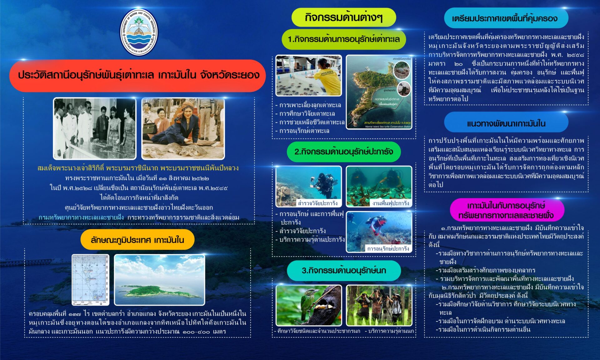 กรมทรัพยากรทางทะเลและชายฝั่ง โดยสถาบันวิจัยและพัฒนาทรัพยากรทางทะเลและชายฝั่ง ลงนามบันทึกความเข้าใจความร่วมมือทางวิชาการ 2 ฉบับ ระหว่างกรมทรัพยากรทางทะเลและชายฝั่ง และสมาคมอนุรักษ์นกและธรรมชาติแห่งประเทศไทย และระหว่างกรมทรัพยากรทางทะเลและชายฝั่งและมูลนิธิรักสัตว์ป่า เพื่อร่วมยกระดับให้เกาะมันใน จ.ระยอง เป็นต้นแบบพื้นที่คุ้มครองทรัพยากรธรรมชาติและแหล่งเรียนรู้นกอพยพและนกธรรมชาติ