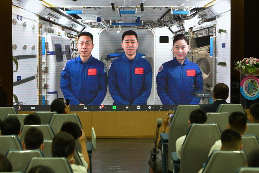 โครงการ “นักเรียนอาเซียนพูดคุยกับนักบินอวกาศจีน” (ASEAN Students Talk with Taikonauts) เปิดโอกาสให้นักเรียนหลายร้อยคนจากจีนและกลุ่มประเทศอาเซียน เช่น บรูไน มาเลเซีย เมียนมา ฟิลิปปินส์ ไทย และเวียดนาม ได้ถามคำถามที่พวกเขาสนใจใคร่รู้อย่างนักบินอวกาศสามารถท่องอินเทอร์เน็ตบนอวกาศได้หรือไม่ หากนักบินอวกาศป่วยต้องทำอย่างไร หากอยากเป็นนักบินอวกาศต้องทำอย่างไร และสิ่งที่น่าประทับใจที่สุดบนอวกาศคืออะไร