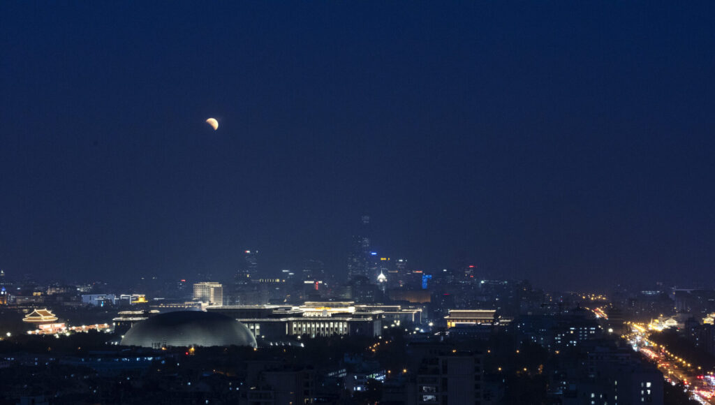 ปักกิ่ง, 9 พ.ย. (ซินหัว) — ชวนชมปรากฏการณ์จันทรุปราคาเต็มดวงบนฟากฟ้าเหนือสถานที่หลายแห่งในกรุงปักกิ่ง เมืองหลวงของจีน อาทิ ประตูหย่งติ้งเหมิน และสวนสาธารณะจิ่งซาน
