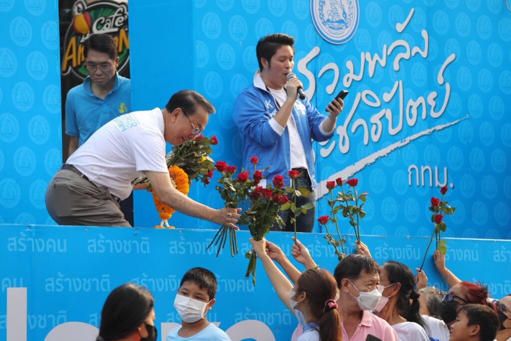 นายองอาจ คล้ามไพบูลย์ รองหัวหน้าพรรคประชาธิปัตย์ พร้อมด้วย น.ส.วทันยา บุนนาค ประธานคณะทำงานนวัตกรรมการเมือง กทม. และนายสุชัชวีร์ สุวรรณสวัสดิ์ ประธานคณะทำงานนโยบาย กทม. ปราศรัยบนรถหาเสียงหกล้อ “น้องไอเดีย” ที่หน้าตลาดมหาสิน ช่วยนายสุทธิ ปัญญาสกุลวงศ์ ผู้สมัคร ส.ส. กทม. เขตพระโขนง-บางนา หมายเลข 8