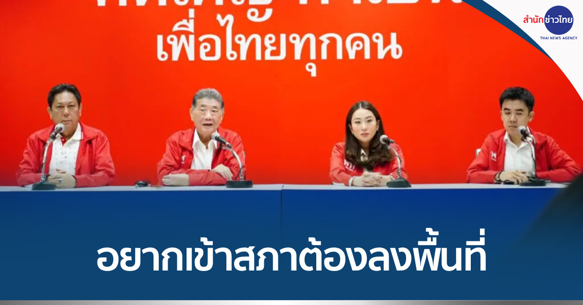 พรรคเพื่อไทย 18 เม.ย.- “ภูมิธรรม” ย้ำเพื่อไทยพร้อมที่สุดอาสาตัวเป็นเครื่องมือให้ประชาชนนำไปสู่การเปลี่ยนแปลง ด้าน “แพทองธาร” ยอมรับกระแสถาโถมในออนไลน์ ยืนยันผู้สมัครลงพื้นที่สม่ำเสมอ กำชับถ้าอยากเข้าสภาฯ ต้องไปพบ ปชช.