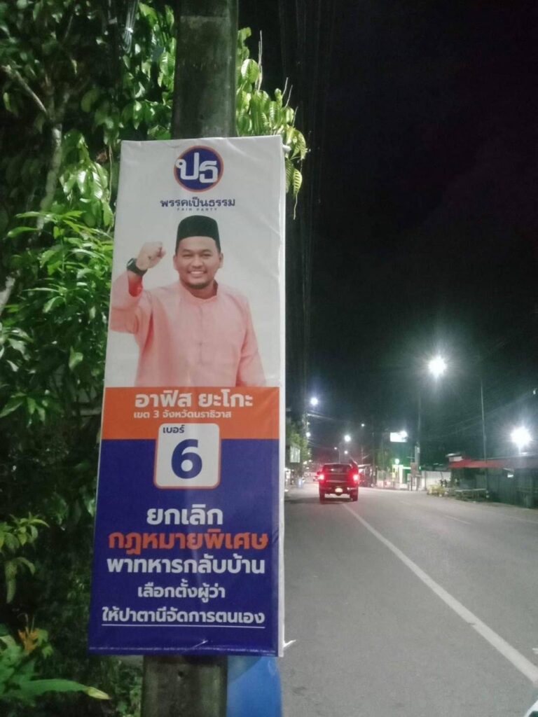 กกต. 18 เม.ย. – พรรคเป็นธรรม แจง กกต. กรณีป้ายหาเสียง “ให้ปาตานีจัดการตนเอง” ใน 3 จังหวัดชายแดนใต้ หวั่นทำผู้สมัครถูกตัดสิทธิ ระบุเป็นการกระจายอำนาจ ไม่ใช่นโยบายปกครองตนเอง มั่นใจไม่ขัดกฎหมาย